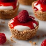 Keywords: raspberry mini cheesecakes, no-bake cheesecake, mini cheesecakes, raspberry sauce, graham cracker crust, creamy dessert