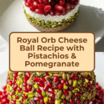 The Royal Orb Cheese Ball is an elegant and flavorful appetizer, perfect for parties and special occasions. Combining cream cheese, sharp cheddar, and feta with fresh herbs and a vibrant pistachio-pomegranate coating, it offers a delightful mix of textures and tastes.