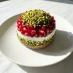 - Step 5: Press the chopped pistachios and pomegranate seeds alternately over the surface, creating a jeweled effect. Garnish with parsley if desired.
