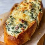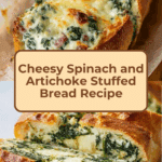 Spinach and Artichoke Stuffed Bread is a warm, cheesy appetizer perfect for gatherings or a cozy night in. Packed with creamy spinach and artichokes inside a crispy baguette, this dish combines comfort and flavor in every bite.
