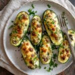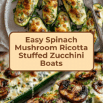 This Spinach, Mushroom, and Ricotta Stuffed Zucchini is a delicious and light vegetarian dish perfect for a healthy lunch or dinner. The tender zucchini boats filled with a creamy mixture of sautéed vegetables and ricotta cheese make for a comforting yet nutritious meal.