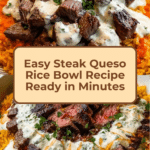 This Steak Queso Rice Bowl is a delicious and satisfying meal perfect for lunch or dinner. Packed with flavorful seasoned steak, creamy queso cheese, and fresh toppings, it’s an easy way to enjoy a hearty, Tex-Mex inspired dish at home.