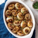 - Bake: Cover the dish with a lid or foil and bake in the preheated oven for 30 minutes. Remove the cover and continue baking for another 30 minutes until the onions are slightly golden and caramelized. For extra color, broil for 1-2 minutes just before serving.