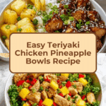 A flavorful and colorful Teriyaki Chicken and Pineapple Bowl featuring tender chicken breast cooked with sweet pineapple chunks and teriyaki sauce, served over a bed of fluffy rice and garnished with green onions and sesame seeds. This dish balances savory and sweet flavors for a quick and satisfying meal perfect for lunch or dinner.