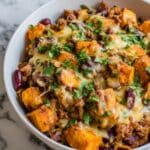 This Tex-Mex Sweet Potato Hash with Ground Beef is a hearty and flavorful one-pan meal combining tender sweet potatoes, seasoned ground beef, and vibrant vegetables. Enhanced with classic Tex-Mex spices, black beans, and diced tomatoes, this dish delivers a satisfying blend of smoky, spicy, and fresh flavors. Perfect for breakfast, brunch, or a quick dinner, it can be topped with melted cheese and a fried or poached egg for extra richness.