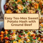 Keywords: Tex-Mex, sweet potato hash, ground beef, one-pan meal, easy dinner, breakfast hash, spicy, black beans
