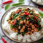 Thai Basil Chicken is a flavorful and aromatic stir-fry that combines tender ground chicken with fresh herbs and spicy chilies. This quick and satisfying dish is perfect for weeknight dinners and pairs beautifully with steamed rice.